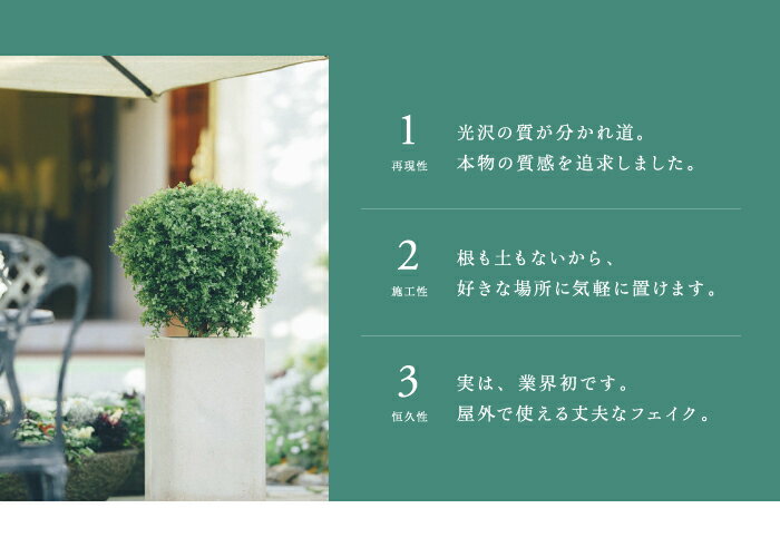 大人の身長よりも低い人工植物でも、プランターでかさ上げしたり根元を飾るだけで提案の幅が広がります。